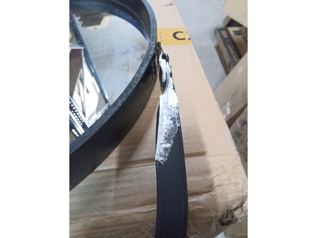 AKCE Černé kulaté zrcadlo s koženou rukojetí NAHAD Ø50 cm II. jakost