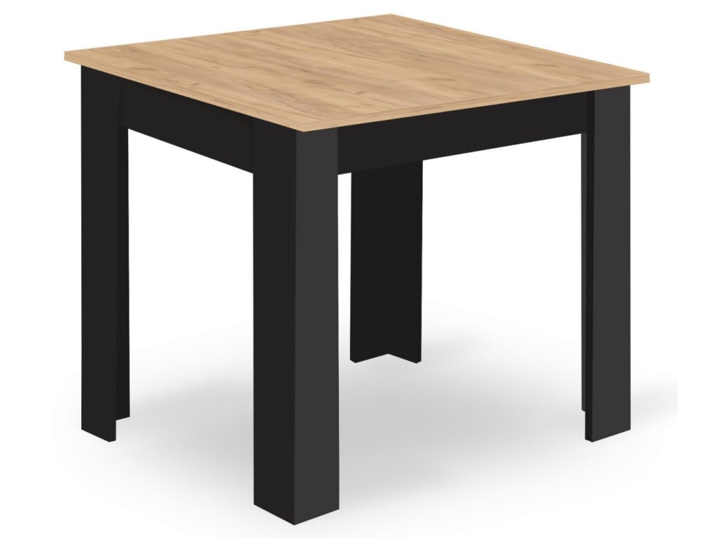 AKCE Jídelní stůl MADO černý s deskou v dekoru dub artisan 80x80cm II. jakost