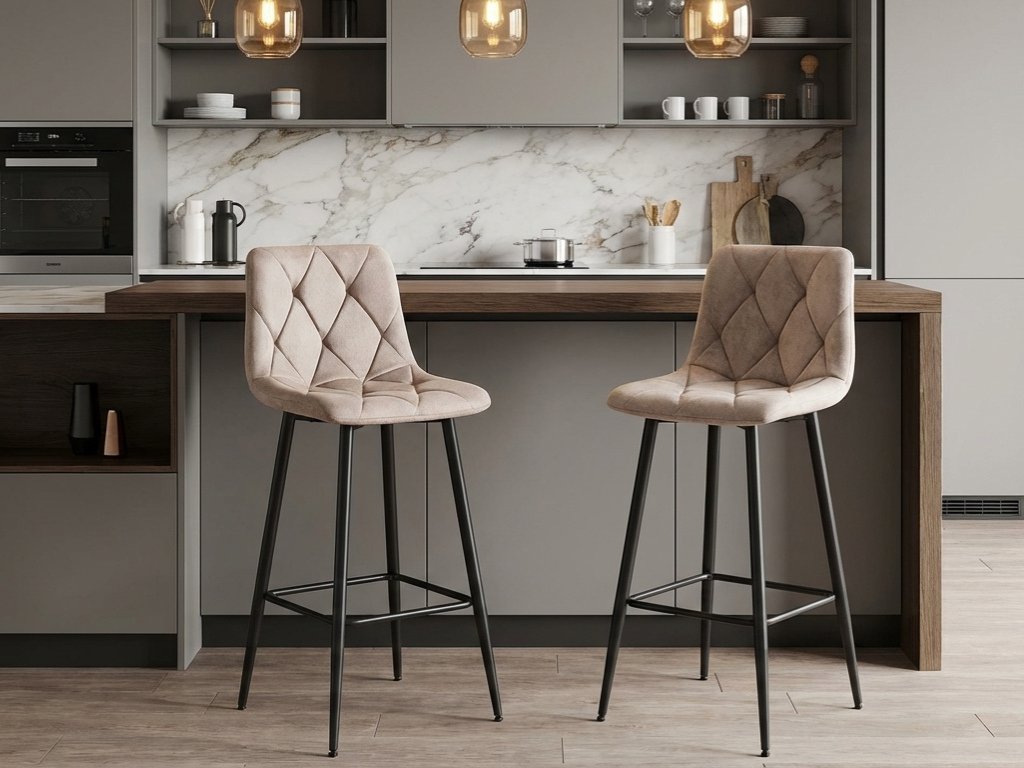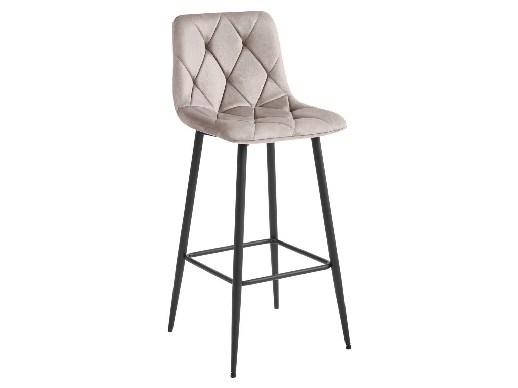 Tmavě béžová barová židle NADO VELVET s černými nohami