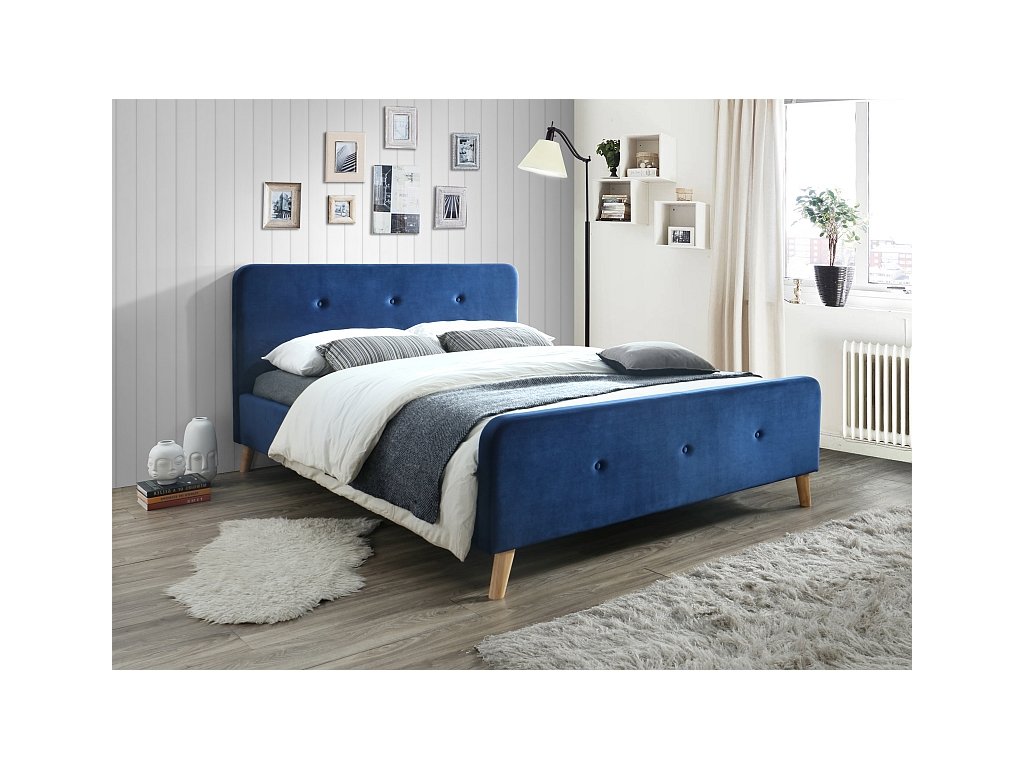 Čalouněná postel MALMO VELVET 160 x 200 cm modrá