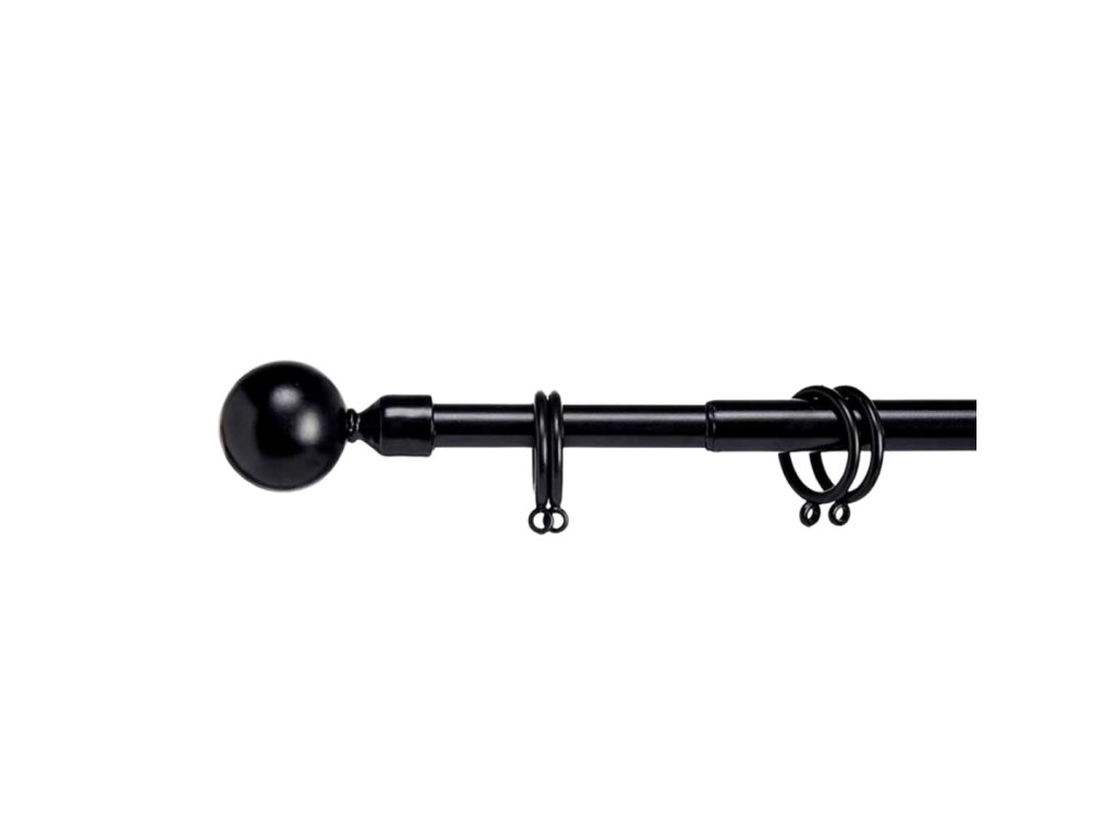 Černá kovová garnýž VALANCE GLOBE 120-210 cm