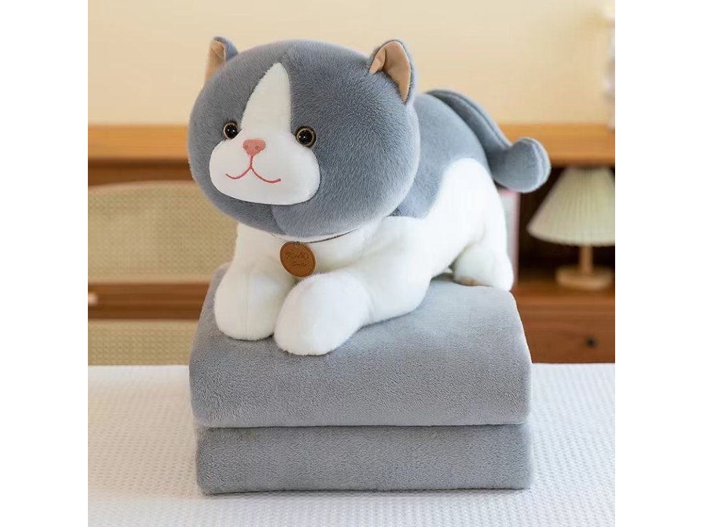 Plyšová KOČKA s dětskou dekou uvnitř, šedá