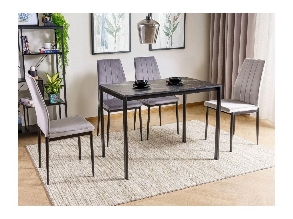 Oživte svou jídelnu jednoduchostí a elegancí moderního designu. Tento jídelní stůl se díky své decentní černé barvě a mramorovému dekoru snadno sladí s různými styly interiéru – od skandinávského po industriální. Ideální volba pro každodenní stolování i slavnostnější příležitosti. V kombinaci s pohodlnými židlemi vytvoříte útulný prostor, kde se rádi sejde celá rodina. Snadná údržba a odolné materiály zajistí, že vám stůl bude sloužit dlouhá léta.