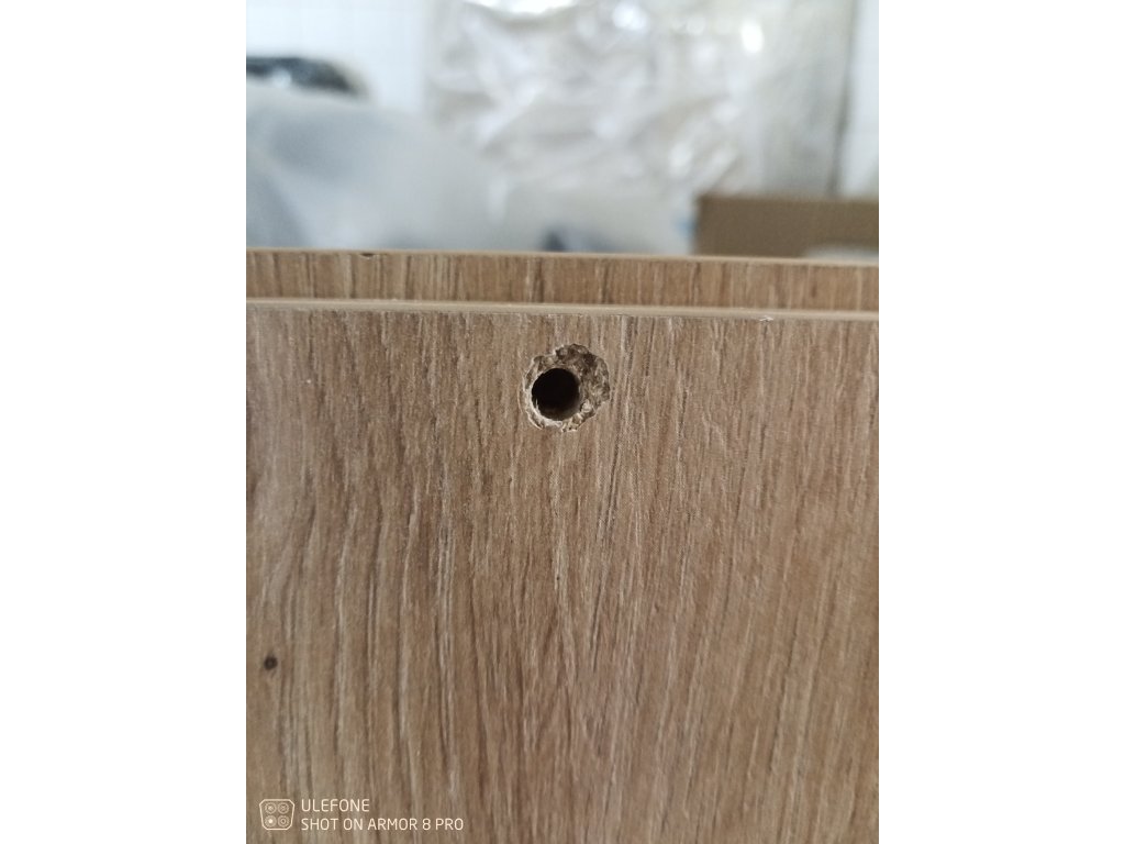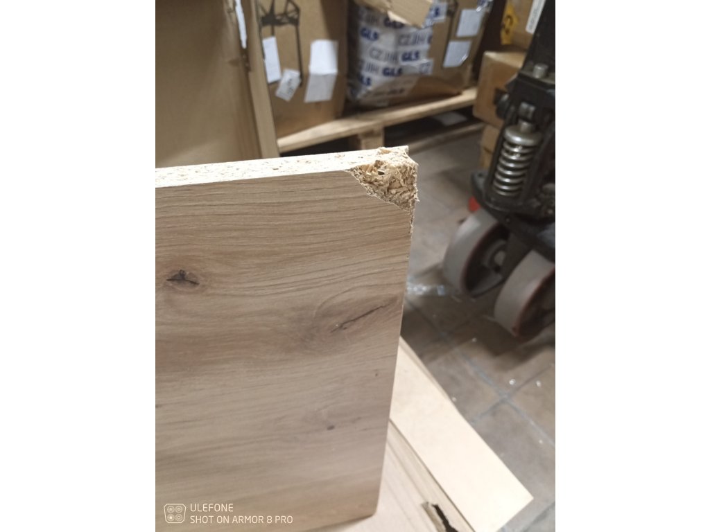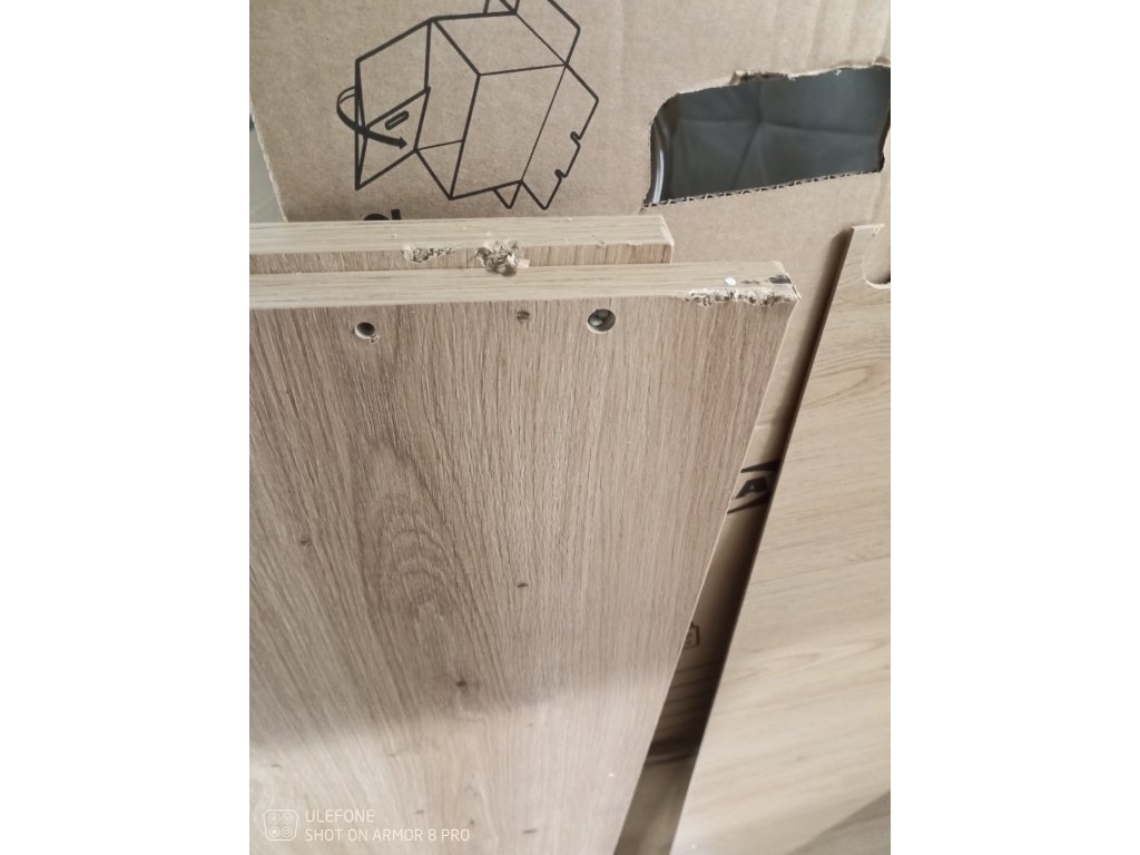 POZOR! II. jakost: Poškozeno z přepravy - otlučené rohy desky / nalomená lamela u dvířek + stopy po montáži
