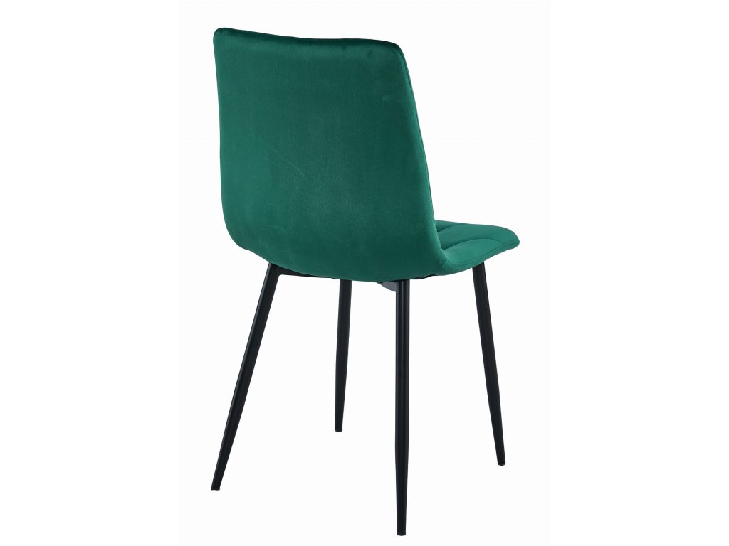 Tmavě zelená jídelní židle LIBRA s černými kovovými nohami přináší do interiéru výrazný prvek s noblesním nádechem. Sametové čalounění s elegantním geometrickým prošíváním působí luxusně, zároveň však zajišťuje vysoký komfort při sezení. Černé kovové nohy dodávají židli moderní vzhled a potřebnou stabilitu.