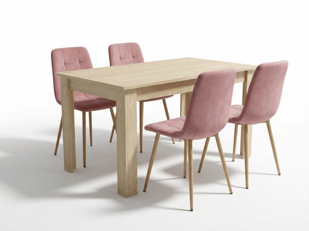 Jídelní set 1 + 4, stůl UMEKO 120x80 cm dub sonoma + růžová sametová židle KARA