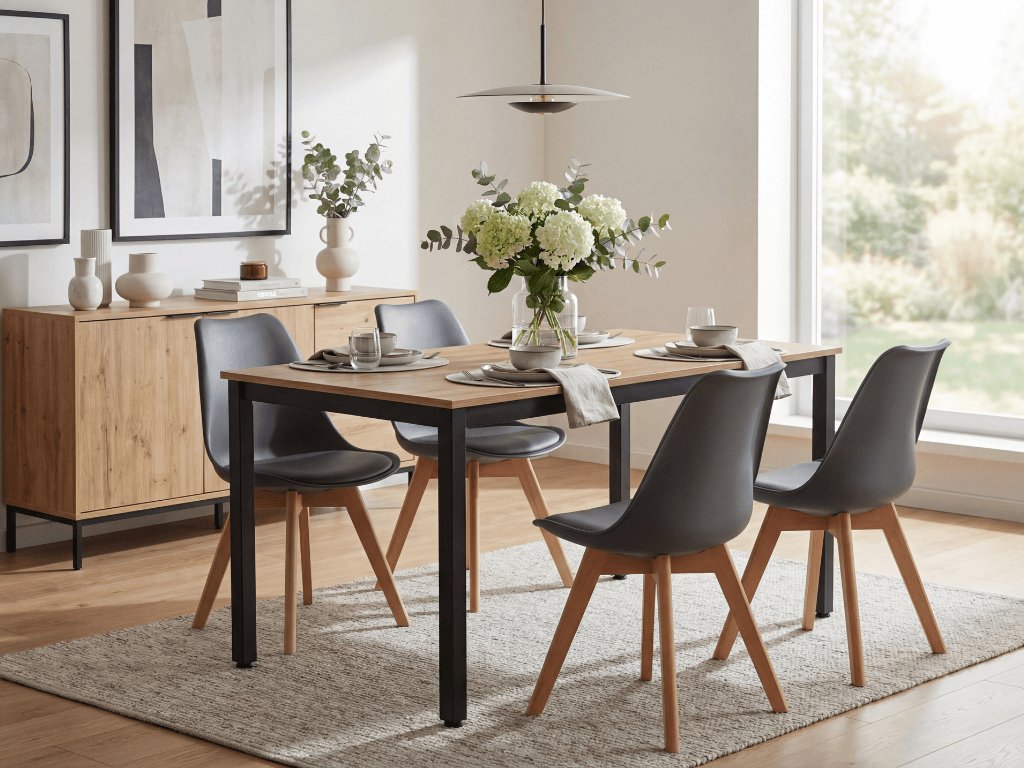 Symbolem skandinávského stylu je bezesporu příroda. V přírodě inspirovaný styl vnese harmonii a severskou eleganci do každého interiéru. Vraťte se i vy k přírodním kořenům ve vaší jídelně a kuchyni. Skandinávské jídelny jsou vzdušné, útulné a velice praktické. Naučte se kombinovat a vrstvit pastelové barvy, vzory a materiály. Jednoduché jídelní židle se nebojte kombinovat s výraznějšími doplňky. Tmavě šedá jídelní židle Kito s masivním stolem vytvoří hřejivý výsledek. Skandinávské židle Kito jsou pohodlné, hodící se do malých i velkých místností. Severskou atmosféru podtrhnou čerstvé bylinky ve lněných závěsných květináčích a velké lampy.