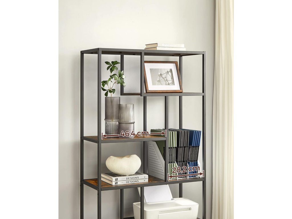 Jedinečné uspořádání polic dělá z tohoto regálu nejen funkční, ale i vizuálně poutavý prvek interiéru. Nechte vyniknout oblíbené knihy, dekorace nebo rostliny a vytvořte si osobitý prostor podle svých představ. Díky vzdušnému designu je ideální i do menších místností, kde poslouží jako stylové rozdělení zóny bez ztráty světla. Ať už v pracovně, obýváku nebo ložnici, tento regál zaujme a zorganizuje váš prostor s lehkostí.