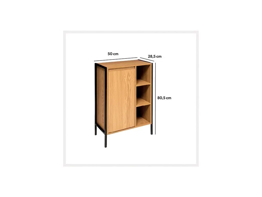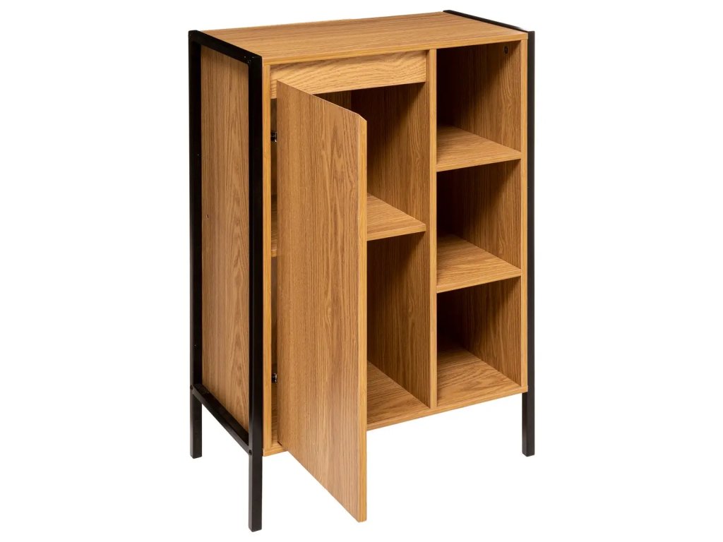 - Vlevo: Uzavřená skříňka s dvířky a policí uvnitř
