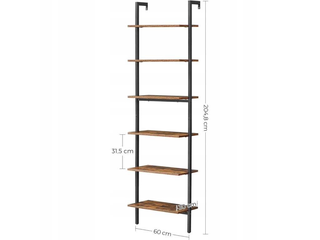 Policový regál TAYLOR 6 polic 204,8x60 cm, rustikálně hnědý