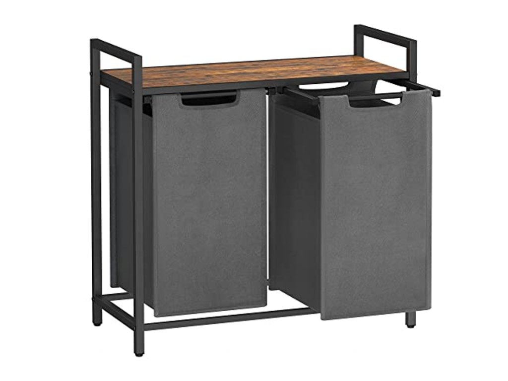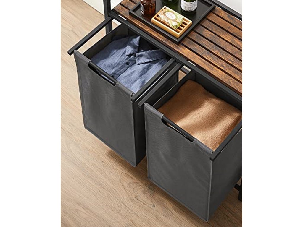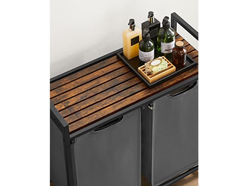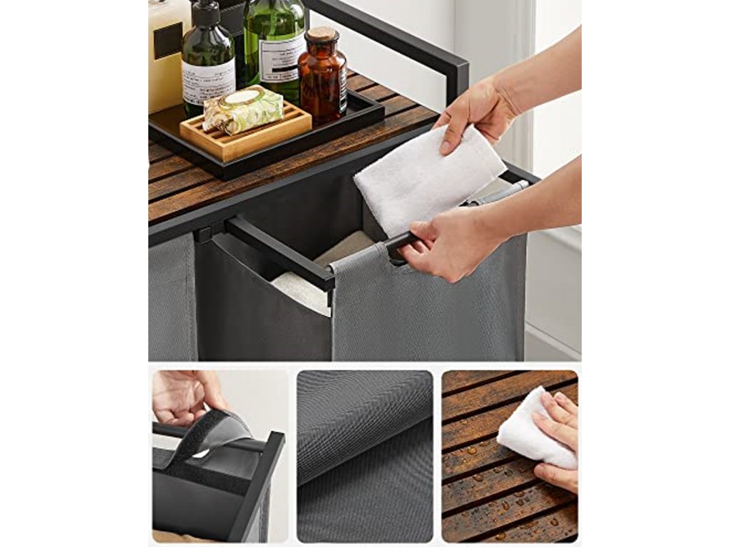 Šedý dvoukomorový koš na prádlo s policí ORGANIZA