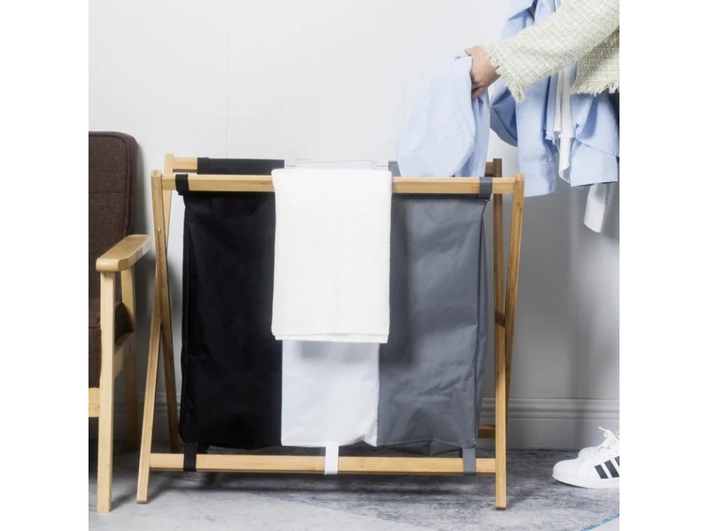 Tříbarevný látkový koš na prádlo CADORA