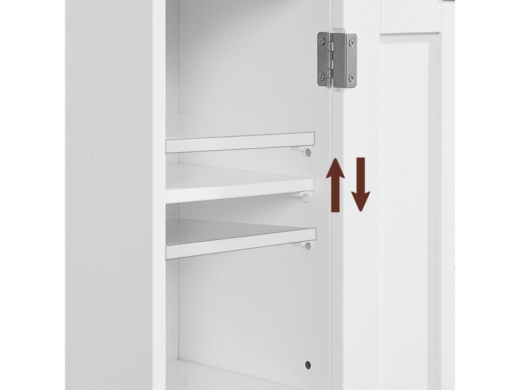 - Police uvnitř skříňky jsou výškově nastavitelné