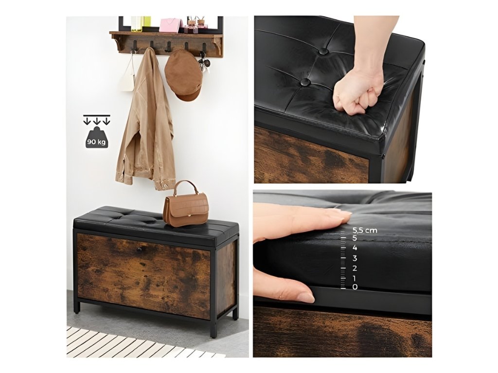 - Čalouněný sedák z eko kůže pro komfort při obouvání