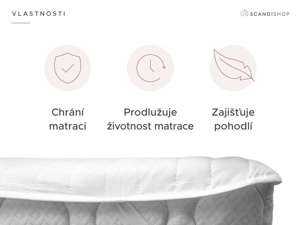 - Zapínání: všité gumy pro připevnění na matraci