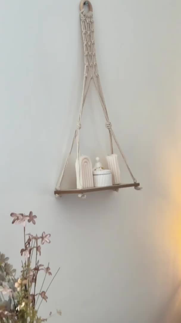 Přineste si kousek skandinávského klidu a harmonie do svého interiéru díky této stylové závěsné polici. Jednoduchý design s macramé prvky a přírodním dekorem dřeva vytváří útulnou atmosféru, která je typická pro hygge styl. Skvěle se hodí pro vystavení oblíbených dekorací, rostlin nebo drobností, které udělají váš domov osobitějším. Vyberte si tento praktický a elegantní doplněk a vytvořte si prostor, kde se budete cítit pohodlně a spokojeně.