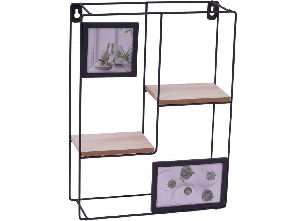 Nástěnná police s fotorámečky KIVORA 40x30 cm, černá