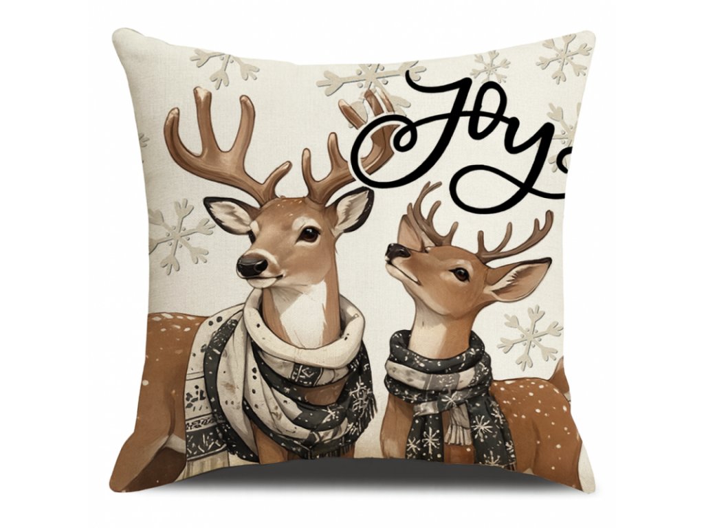 Vánoční povlak na polštář DEER JOY 45x45 cm, béžový