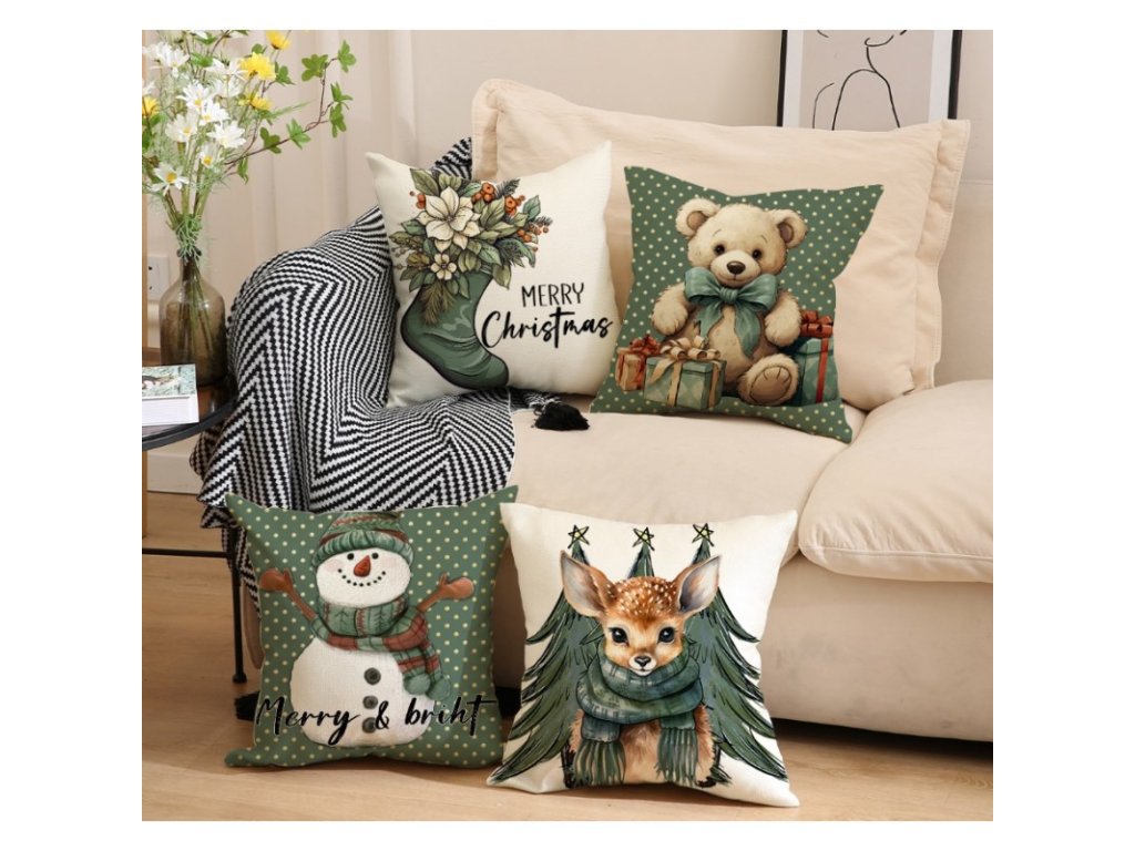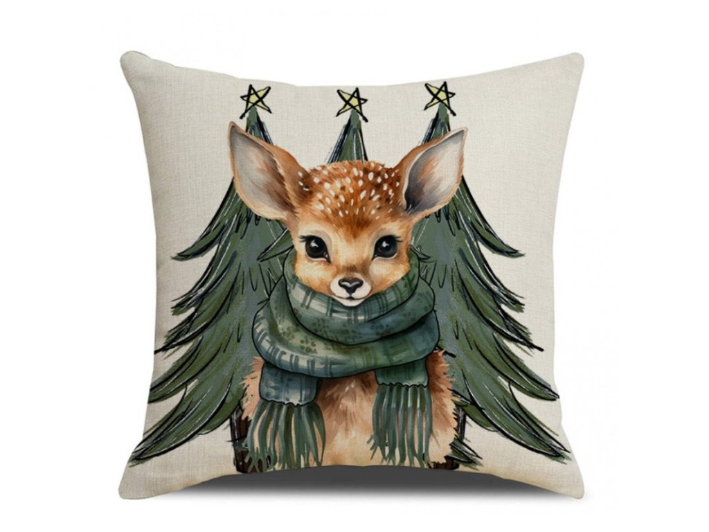 Vánoční povlak na polštář FAWN WITH TREES 45x45 cm, krémový