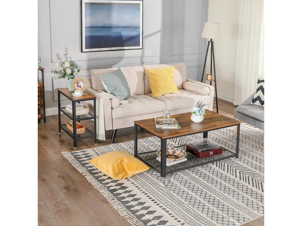 Díky svému kompaktnímu tvaru a praktickému provedení se tento stolek stane vaším nepostradatelným spojencem v každé místnosti. Nabízí ideální prostor pro odložení knihy, šálku kávy nebo dekorací, zatímco spodní kovové police poslouží k přehlednému uskladnění časopisů, košíků nebo elektroniky. Kombinace dřeva a kovu dodává interiéru industriální nádech a zároveň se snadno sladí s různými styly zařízení. Využijte stolek vedle pohovky, v předsíni nebo jako noční stolek – možností je spousta.