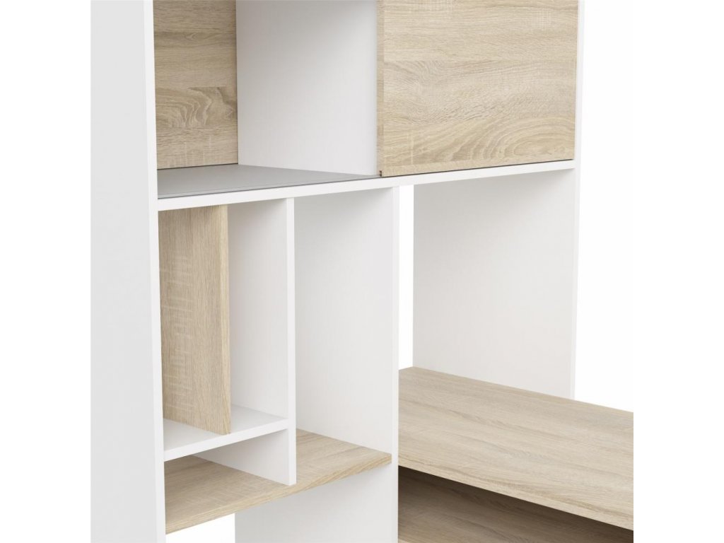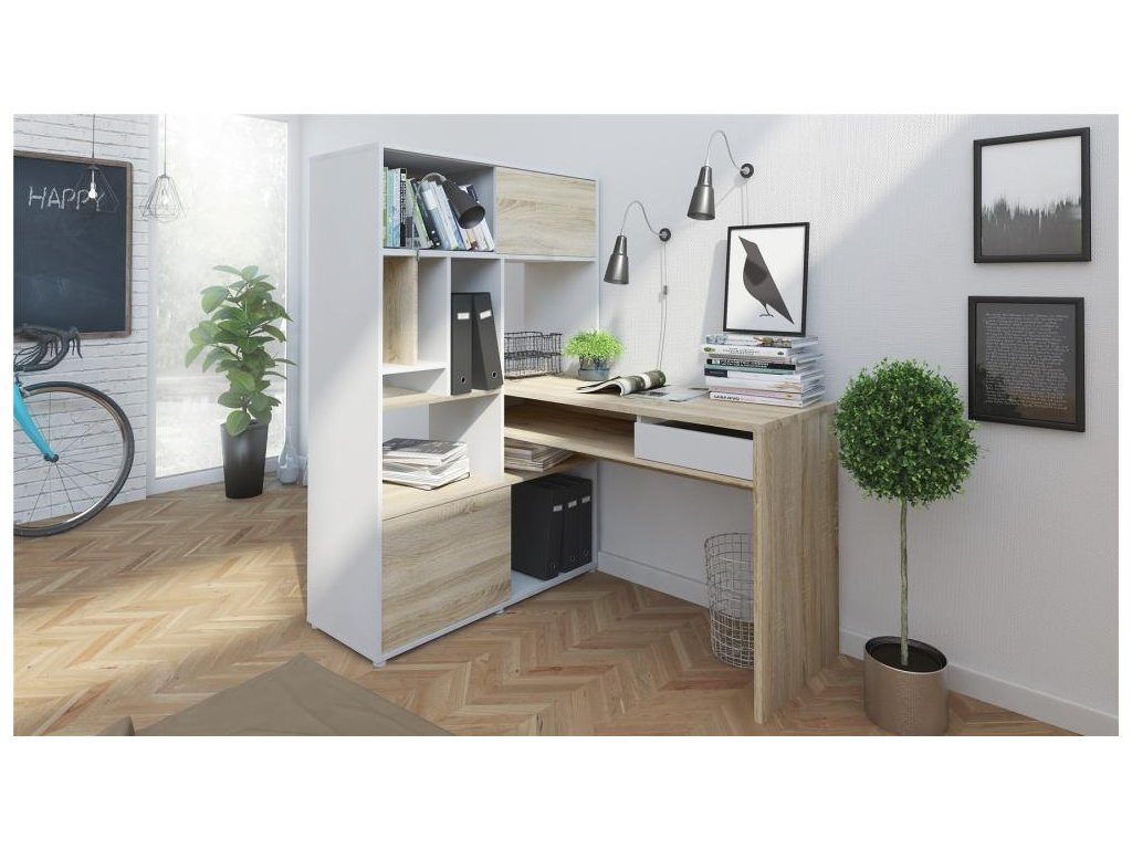 Rohový psací stůl EFREM PLUS s knihovnou v dekoru dub