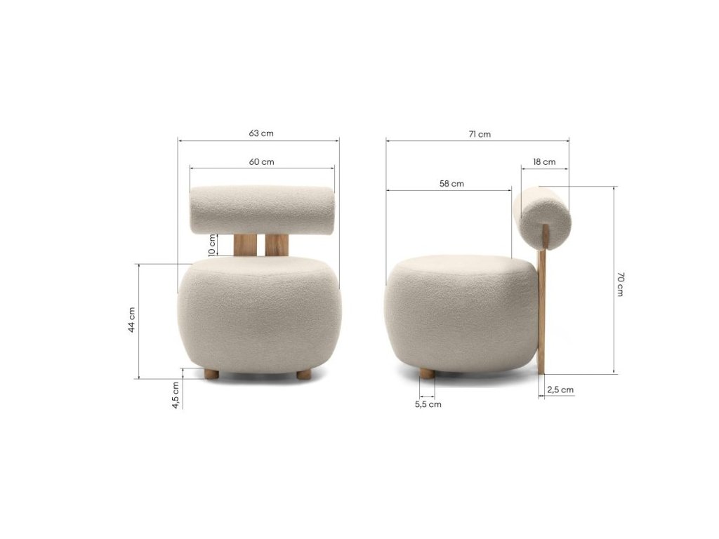 - Materiál potahu: Bouclé tkanina