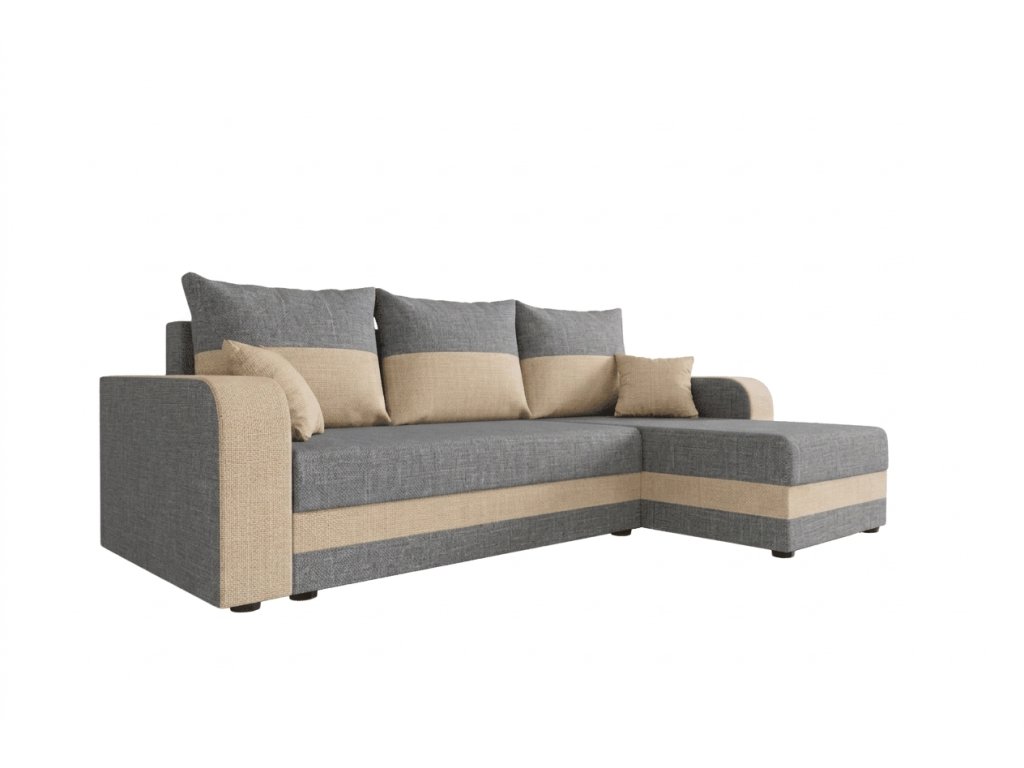 Rozkládací oboustranná sedací souprava do L VALERIO 238x140 cm, světle šedá/béžová + 2 polštářky ZDARMA Sawana 21 + Sawana 01