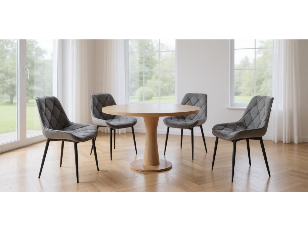 Styl spojující jednoduché tvary a vysokou funkčnost. Vsaďte na střídmé doplňky, jemnou paletu barev a přírodní materiály. Skvělými doplňky do skandinávské jídelny jsou stálezelené rostliny, barevné prostírání a velké kovové lampy. Skandinávský interiér se neobejde velkých oken a osvětlení, které zaručí světlo i během krátkých dnů. Tmavě šedá jídelní židle Tor dokonale zapadne do jídelny inspirované skandinávskými zeměmi. Jednoduché prošívání a černé nohy slaďte se stolem s kovovými elementy. Výborně vypadají různé barvy židlí u jednoho stolu. Nebojte se změny.