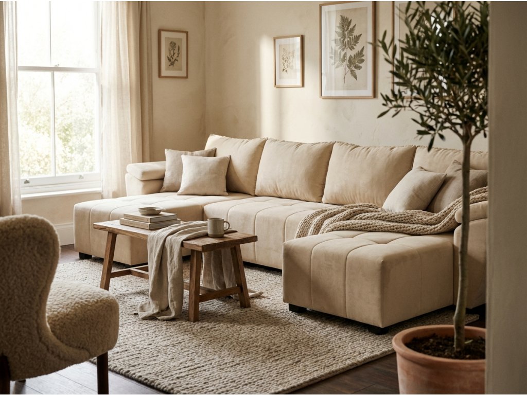 Rozkládací sedací souprava do U LIVARO 305x140 cm, krémová
