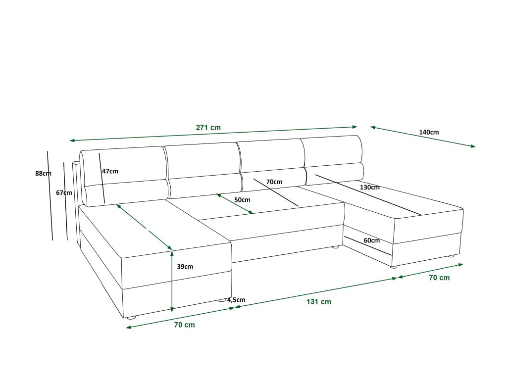 | Plocha na spaní pohovky: | 130 x 270 cm |