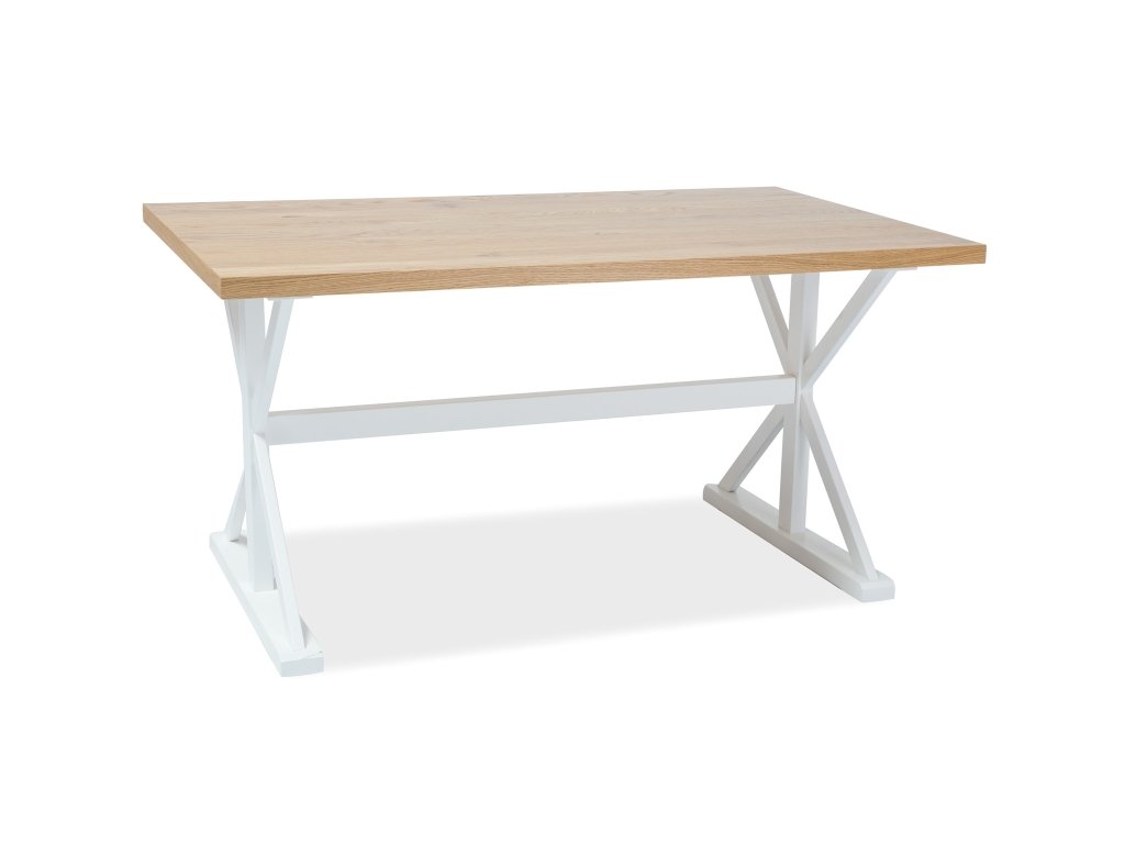 Bílý jídelní stůl s deskou v dekoru dub OXFORD 150x90