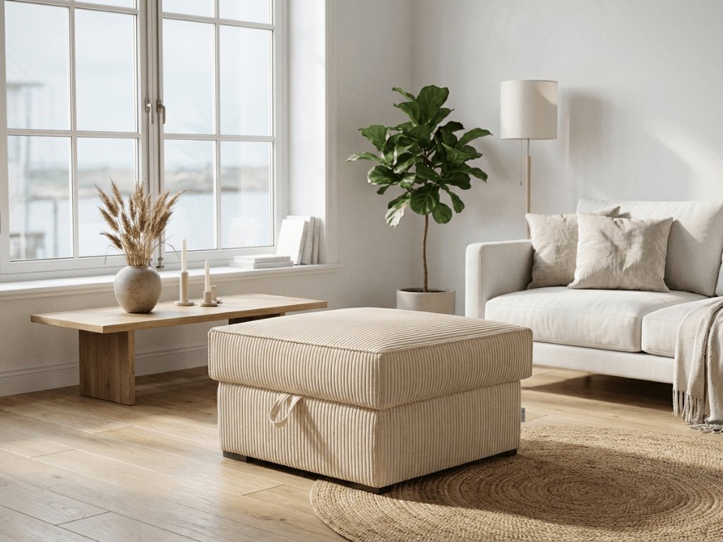 Krémový taburet SMART COSARO s úložným prostorem 65x65 cm POSO 105