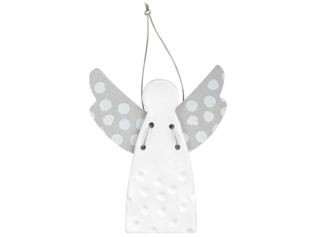 Porcelánový mini anděl DOTS SILVER, závěsný