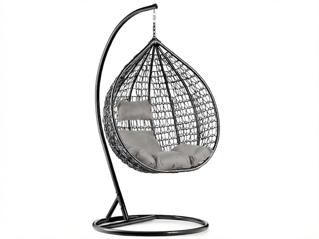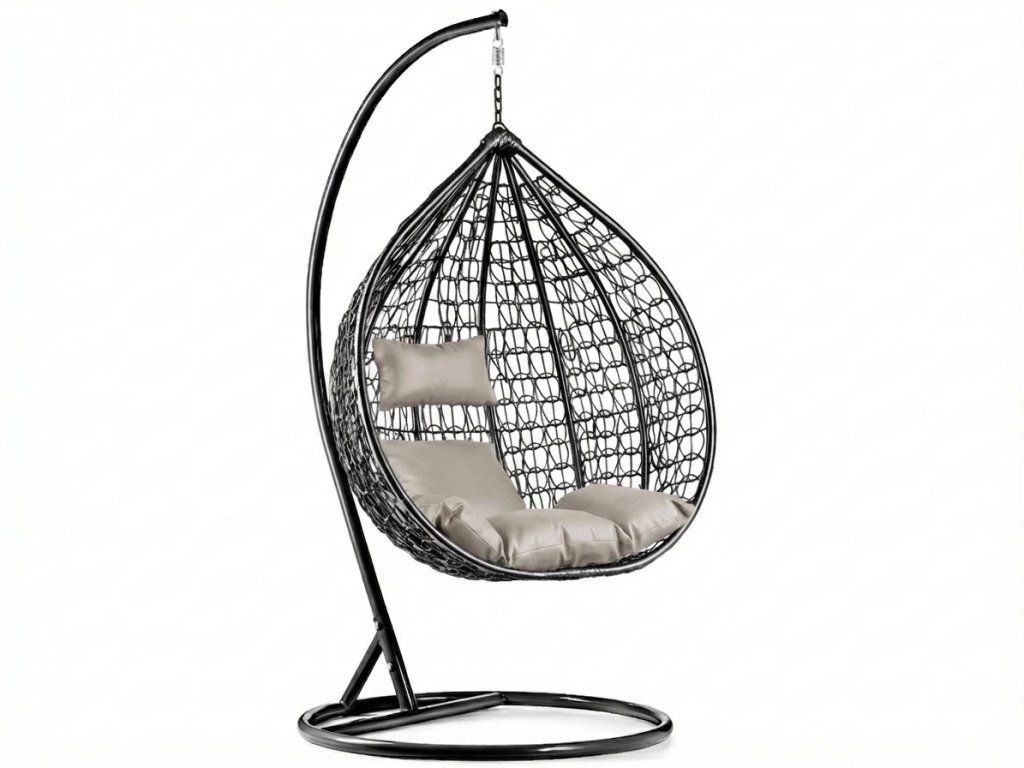 Černé závěsné křeslo KOKON se stojanem, světlý polštář